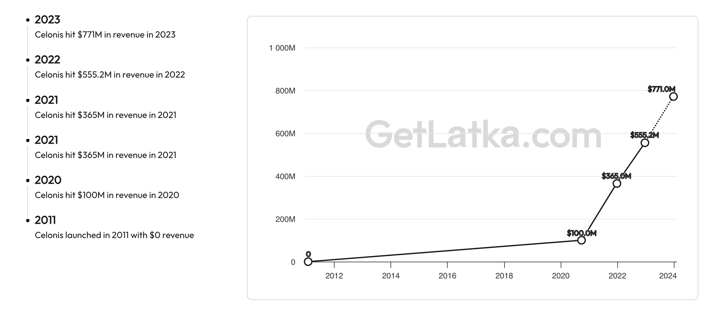 Annual Recurring Revenue (ARR): Celonis is reported to have achieved an annual recurring revenue (ARR) of $400 million in 2021. This figure reflects the company's strong growth trajectory in the enterprise software market. As of 2023, some sources suggest that Celonis' ARR may have reached $771 million, underscoring its continued success in scaling its business and expanding its customer base. This growth is a testament to its position as a leading provider of process mining and automation solutions.