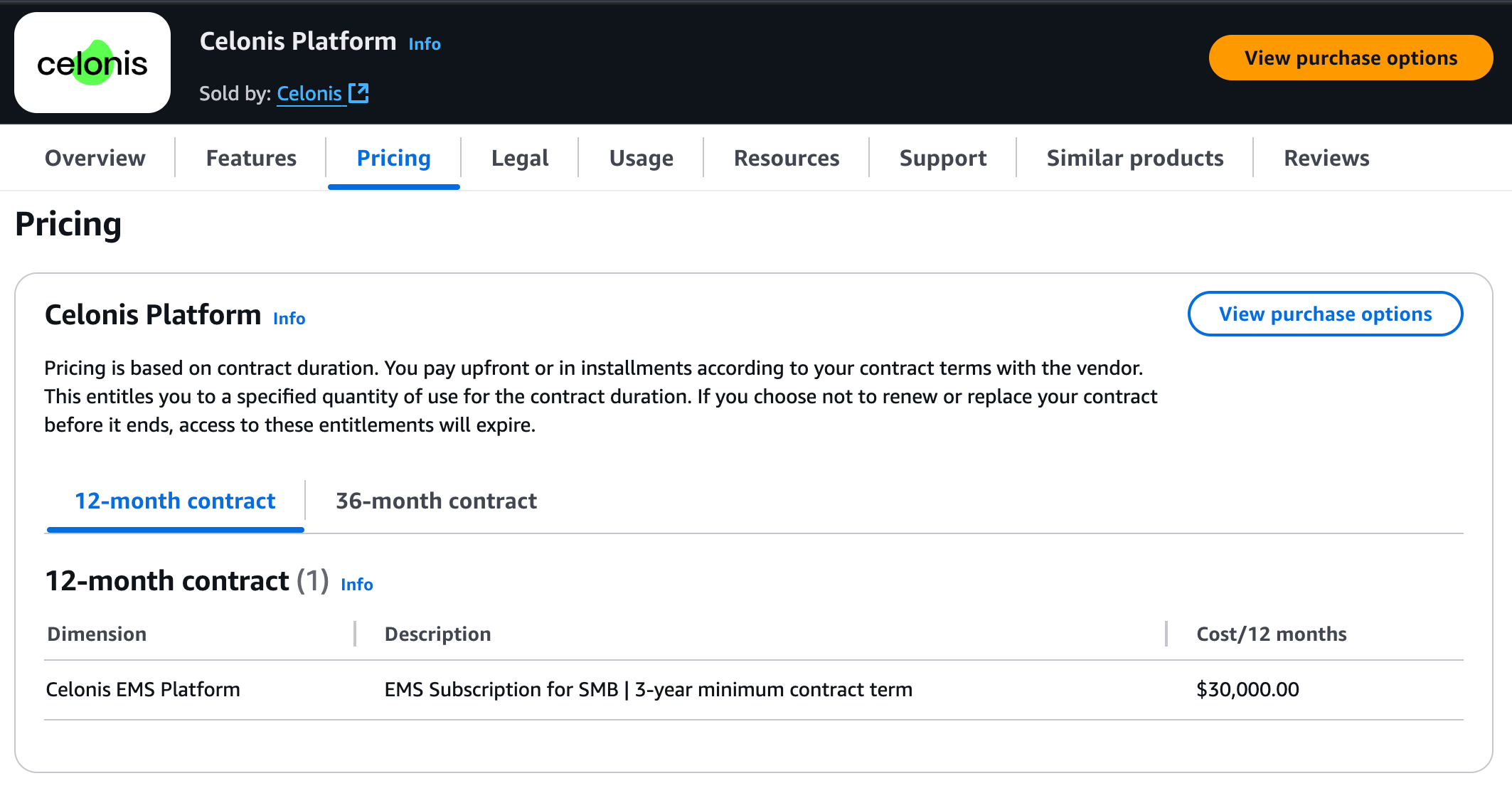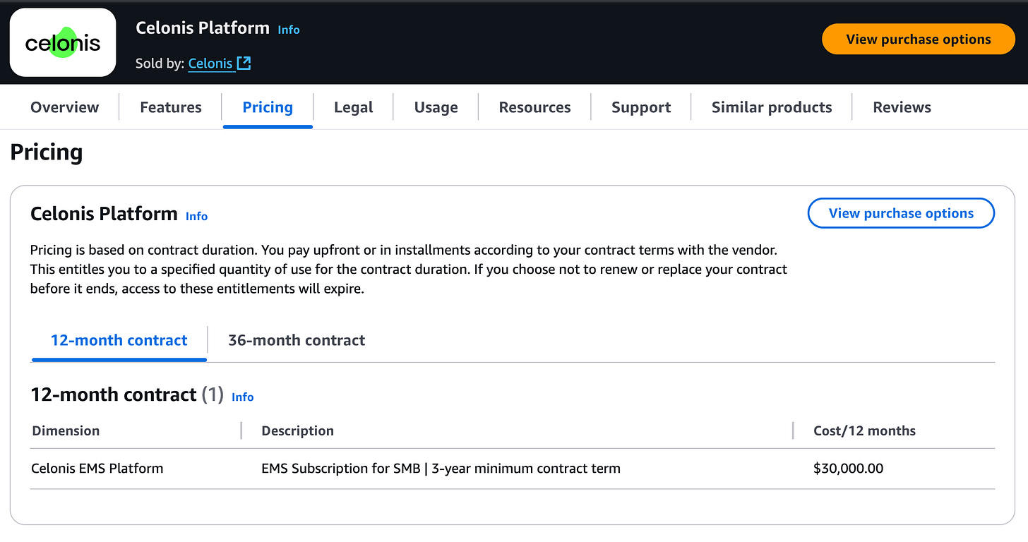 Celonis adopts a subscription-based pricing model designed to cater to the specific needs of enterprise clients, balancing flexibility with scalability. While exact pricing details remain undisclosed, industry estimates suggest an annual subscription cost of approximately $30,000, typically requiring a minimum three-year commitment.